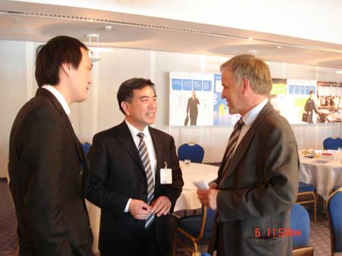 Mr. Wang Guangming (Chairman of Borad of Director), Mr. Jia Yanhua (Chief Engineer) and Mr. Ma Xiaofeng( Manager of Imp & Exp Dpt) Visit Finland Kone from May 6 to 7 and attend the Glaobal Supplier;s Day. Mr. Wang Guangming spoke on the Meeting and received applauds from the managers of Kone. Mr.Heikki Leppanen, Executive Vice President had a talk with Mr. Wang Guangming after meeting